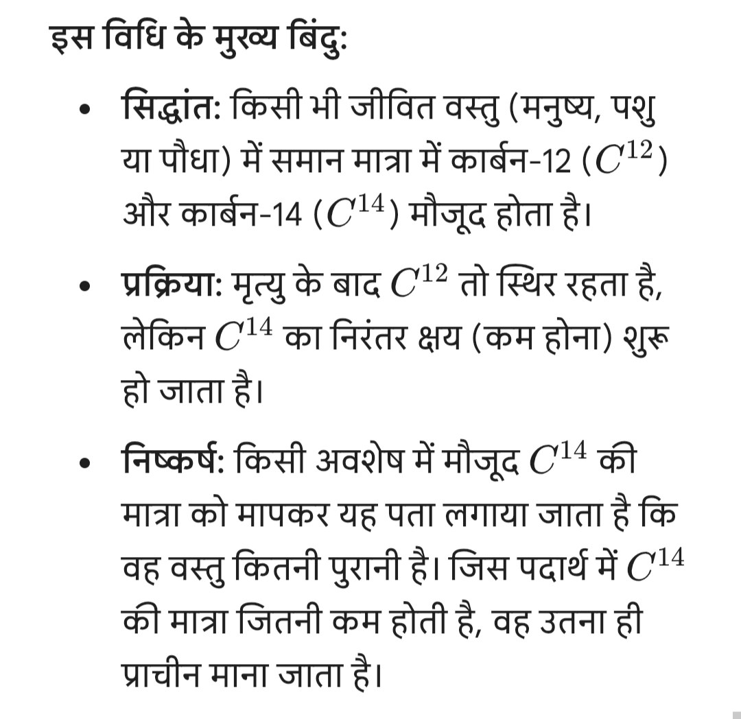 Home Subjective history 12th 12th History Subjective 0004 | कार्बन 14 (C-14) विधि क्या है? Subjective history 12th 12th History Subjective 0004 | कार्बन 14 (C-14) विधि क्या है? By admin - March 22, 2026 18 0 SHARE Facebook Twitter 12th History Subjective 0004 | कार्बन 14 (C-14) विधि क्या है? उत्तर: तिथि निर्धारण (Dating) की वैज्ञानिक विधि को कार्बन 14 विधि कहा जाता है। इसकी खोज अमेरिका के प्रसिद्ध रसायनशास्त्री बी. एफ. लिबी (B.F. Libby) ने 1946 में की थी। >>>> Best of Luck