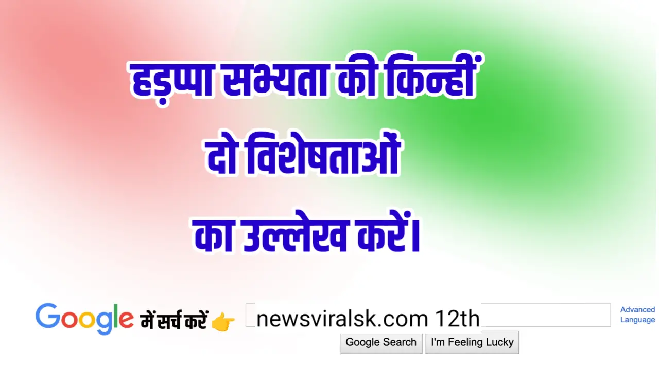 उत्तर: हड़प्पा सभ्यता अपनी आधुनिक सोच के लिए जानी जाती है। इसकी दो प्रमुख विशेषताएँ इस प्रकार हैं: