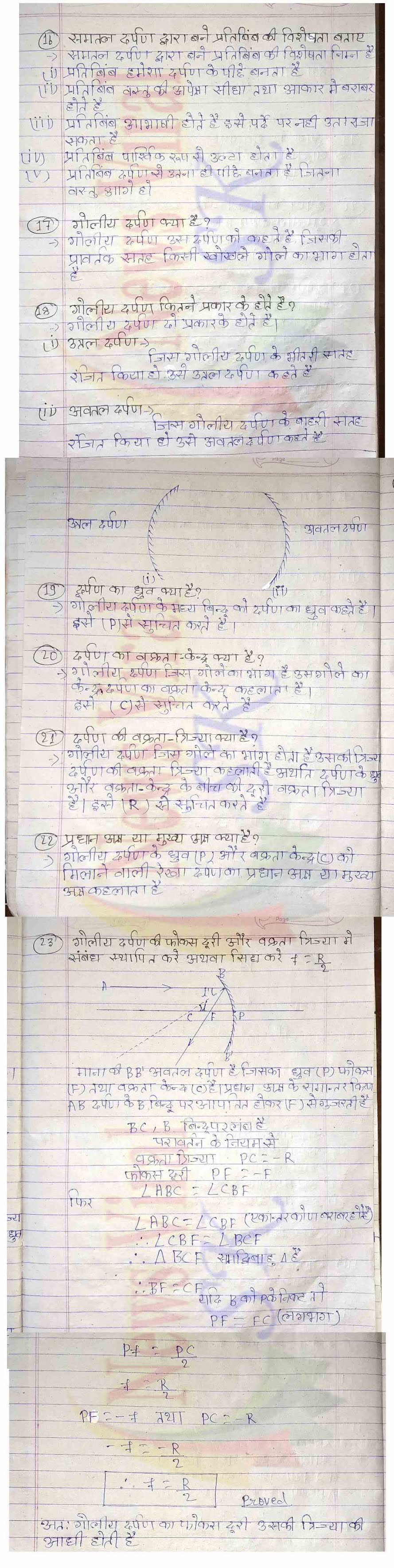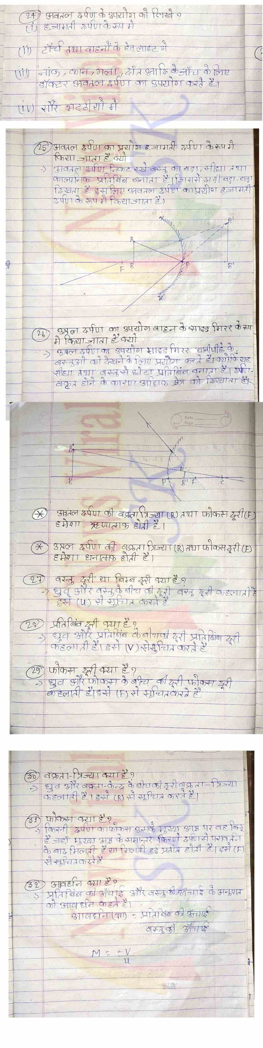 प्रकाश के परावर्तन तथा अपवर्तन | NOTES In Hindi Class 10th | pdf Download