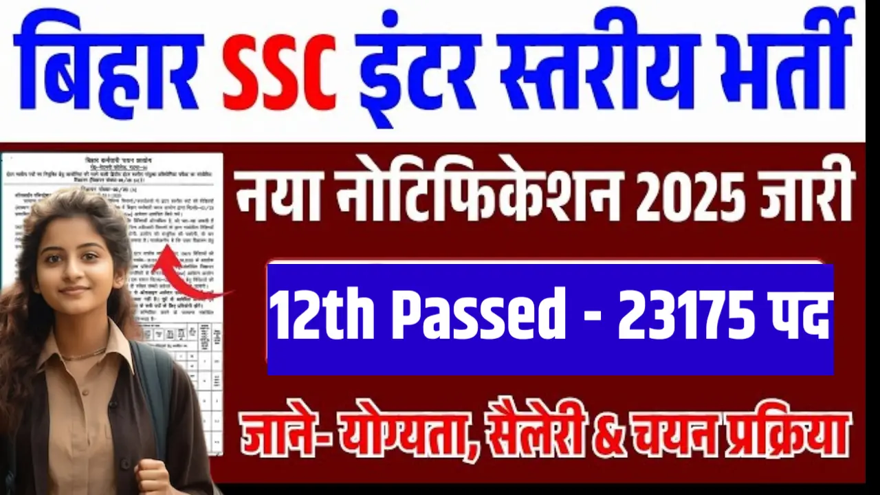 बिहार कर्मचारी चयन आयोग (BSSC) ने इंटर लेवल भर्ती 2025 के लिए नया नोटिफ़िकेशन जारी कर दिया है। इस भर्ती के तहत कुल 23,175 पदों पर नियुक्ति की जाएगी।