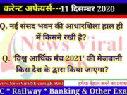 11 December 2020 करंट अफेयर्स | Current Affairs in Hindi | Daily Current Affairs