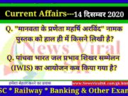 14 December 2020 करंट अफेयर्स | Current Affairs in Hindi | Daily Current Affairs