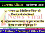18 December 2020 करंट अफेयर्स | Current Affairs in Hindi | Daily Current Affairs