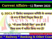 12 December 2020 करंट अफेयर्स | Current Affairs in Hindi | Daily Current Affairs