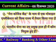 08 December 2020 करंट अफेयर्स | Current Affairs in Hindi | Daily Current Affairs