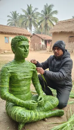 कुछ सेकंड इंतज़ार करें। Gemini आपकी पत्तों से बनी मूर्ति जैसी AI इमेज बना देगा।